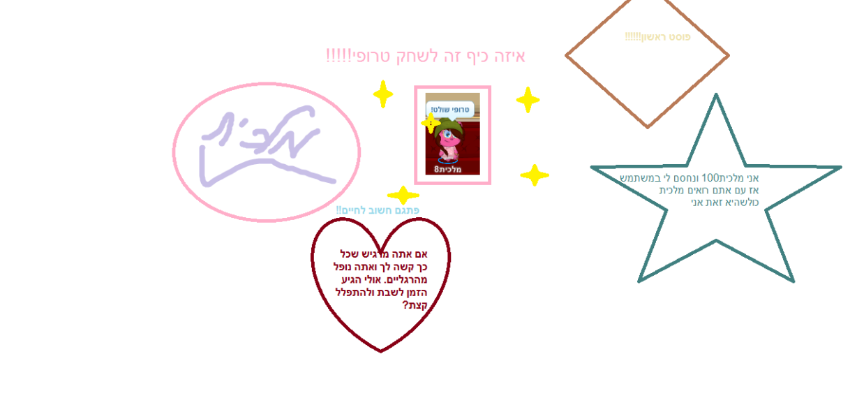 הי טרופים מה קורה זאת שוב פעם אני היום אני החלפית עם סטפני10 המדימה כפי שכבר אמרתי לכם היא ממש תשמח שתעקבו אחריה מי שרוצה להחליף איתי אז שפשוט יכתוב לי כאן זהו חברים אני עומדת להפציץ אותכם במלא יצירות מקווה שתאוהבו את התוכן שלי אוהבת טליוש
