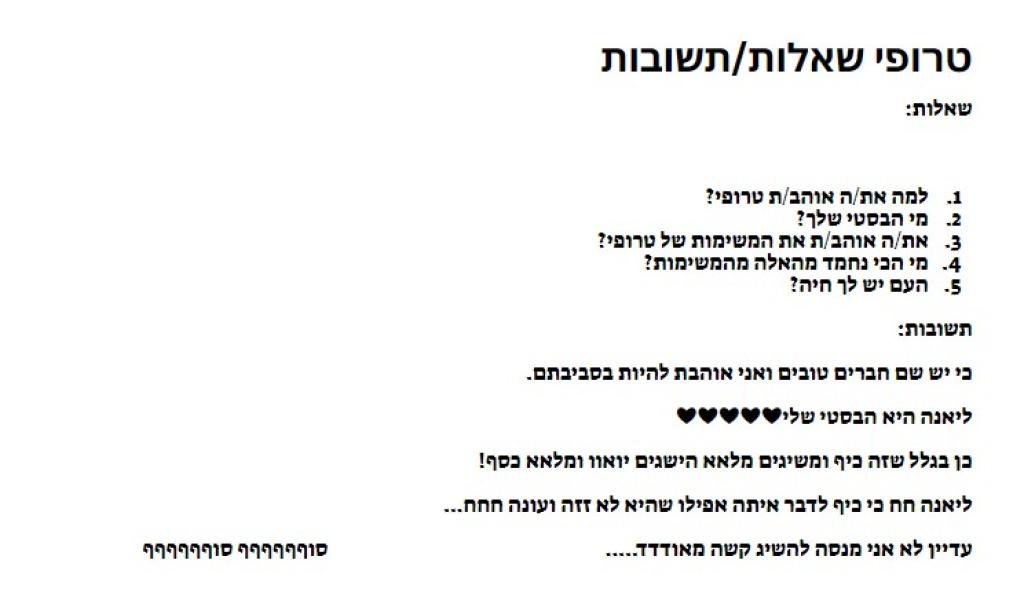 2.להעלות יצירה של התשובות שלכם ולשים #שאלון (חובה להוסיף תשובות ליצירה)/להגיב את התשובות בתגובות