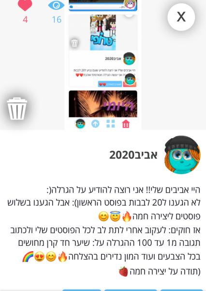 היי אביבים שלי!! אני רוצה להזכיר שיש הגרלה בעמוד שלי בפוסט הקודם אז מי שעוד לא נרשם זה הזמן ההגרלה על כל הצבעים של המחושים 3000 שטרות את זה שכחתי להוסיף ועל שיער חד קרן ( אי אפשר להביא שטרות אז הזוכה תגיד לי מה לקנות לה בזה) והחוקים הם: לעקוב אחרי בעמוד לתת לייק לכל הפוסטים שלי לכתוב תגובה שעשיתם הכל ולבחור מספר מ1 עד 100 (לא פה בפוסט הקודם שלי של ההגרלה אוהבת😍 בהצלחה 😇