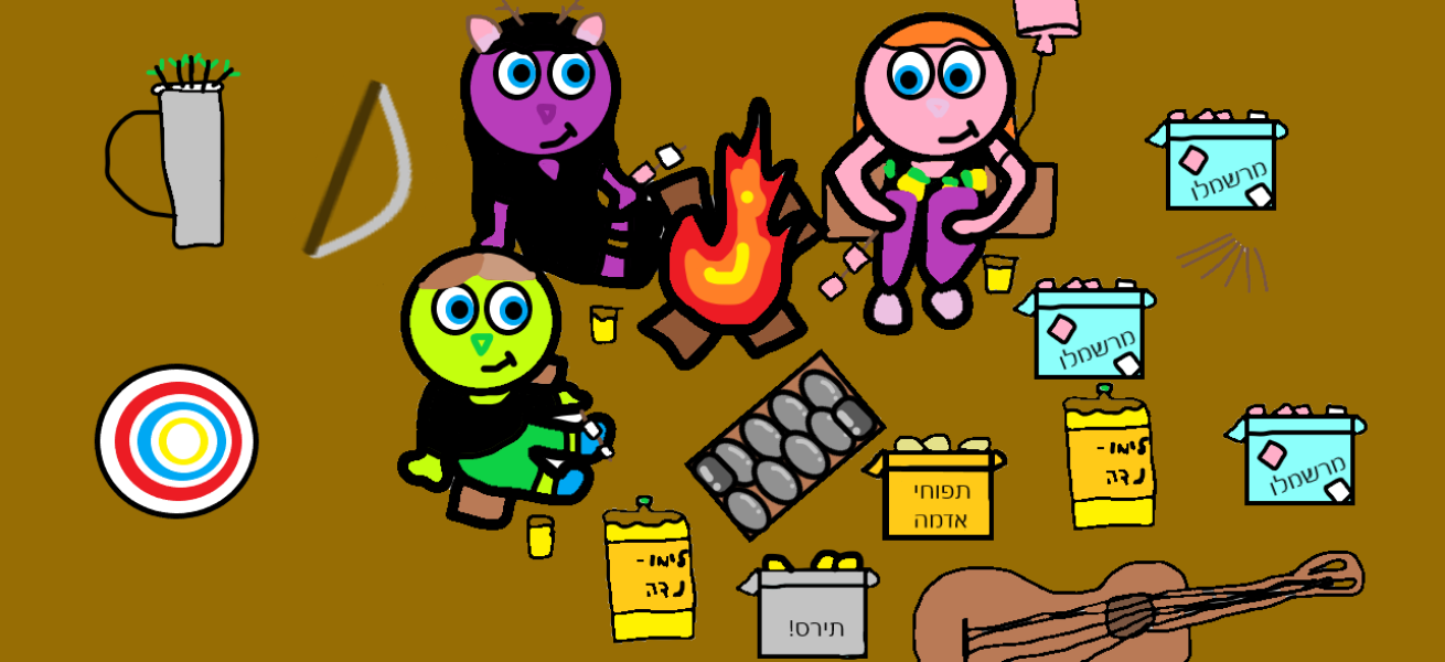 ציירתי אותנו יושבים מסביב למדורה. ציירתי גם: חץ וקשת,תפוחי אדמה,תירס,מרשמלו כמובן,גיטרה,מטרה לחץ וקשת וכמובן מרשמלוווו.