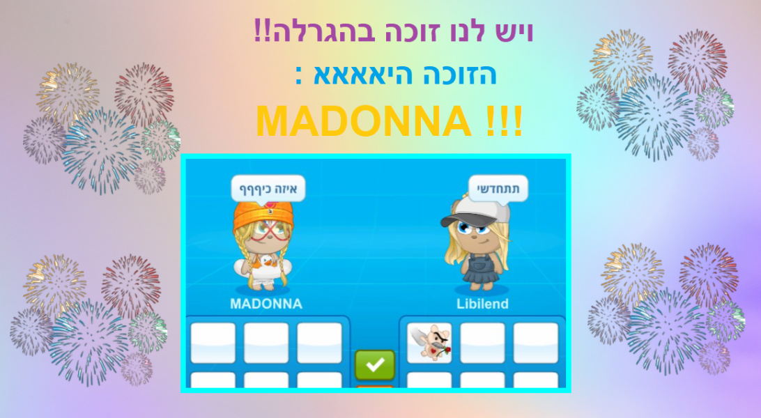 אם לא שמתם לב, ביצירה הקודמת שלי בה התפרסמו הזוכים מההגרלה הקודמת, פרסמתי הגרלה נוספת באותה יצירה על בלון מגן דוד לבן ותכלת, וחולצת טרופילדת 4 ירוקה-סגולה.