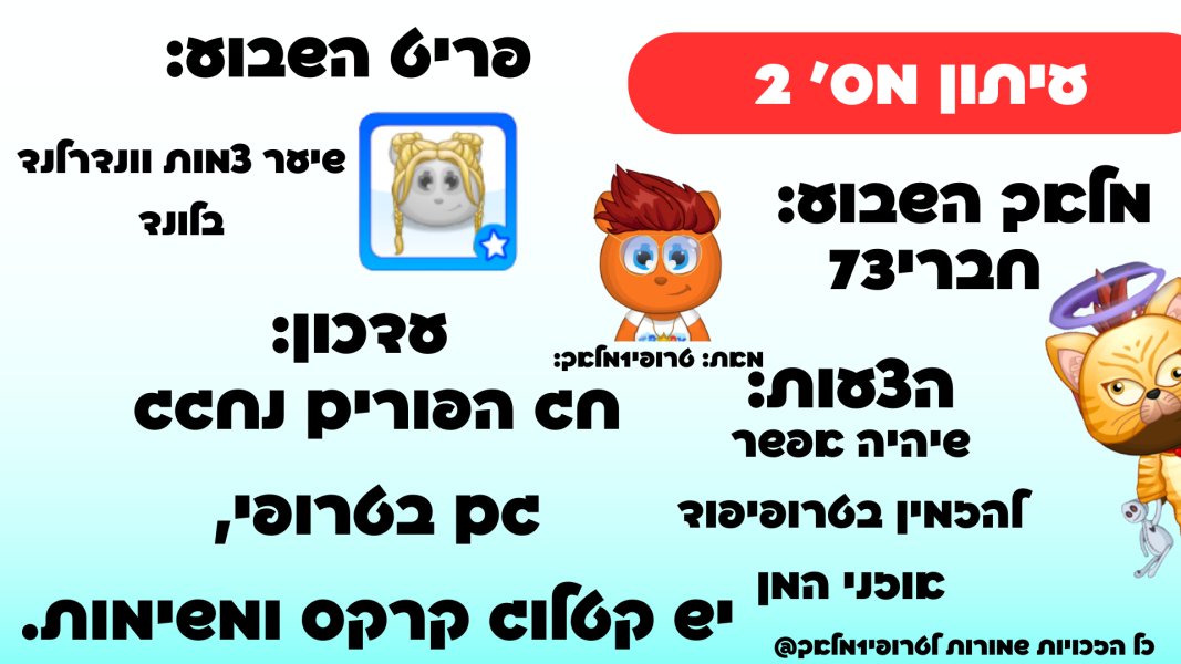 #עיתון #2 #הצעות #חברי73 #מלאך_השבוע #פריט_השבוע #שיער_צמות_וונרלנד_בלונד #עדכון #פורים #טרופי #קרקס #גופי #כוכבים