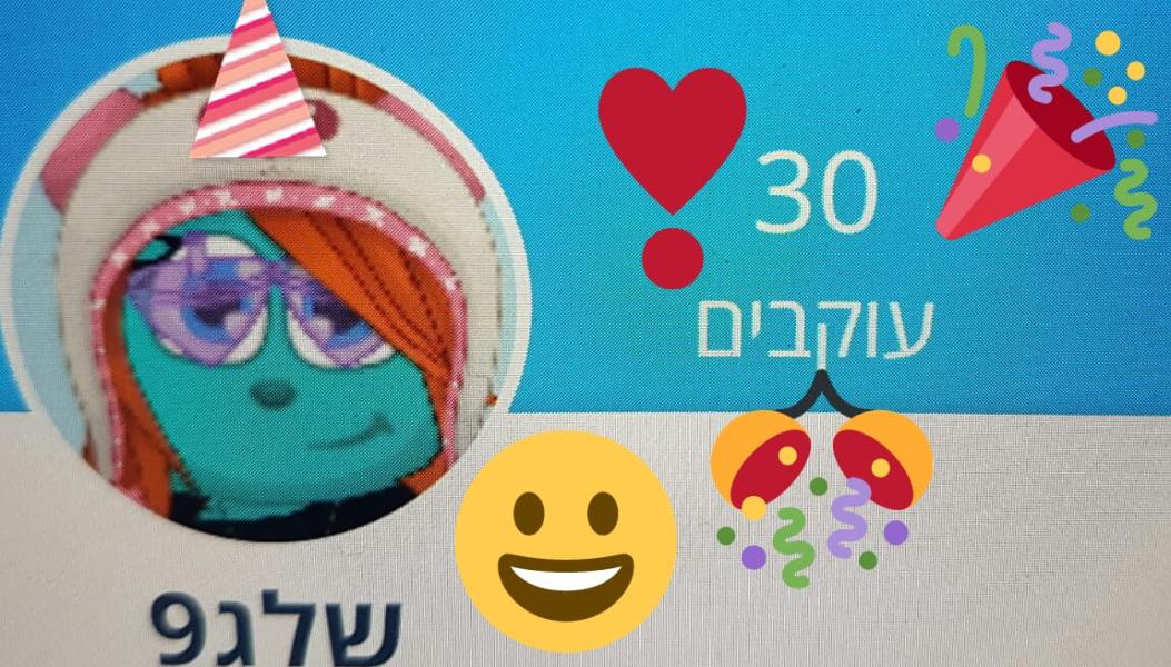 היי שלגונים, יאיי הגענו לשלושים עוקבים יואו אני ככ רציתי להגיע לשלושים עוקבים.. והא הגענו תודה רבה לכם.. מהיום כול מי שעוקב אחרי יקבל עוקב בחזרה.. ובידיוק היום גיליתי שאפשר לראות מי עוקב אחרייך.. וזה מגניב אבל אם מישהו עוקב אחרי ואני עוקבת אחריו כבר אז אני יעקוב מהטרופי השני שלי.. והא בקיצר תודה רבה לכולם עכשיו המטרה שלי היא להגיע לחמישים עוקבים והא מקווה שתעזרו לי להגיע לחמישים עוקבים.. והא נתראה ביצירה הבאה בי(: