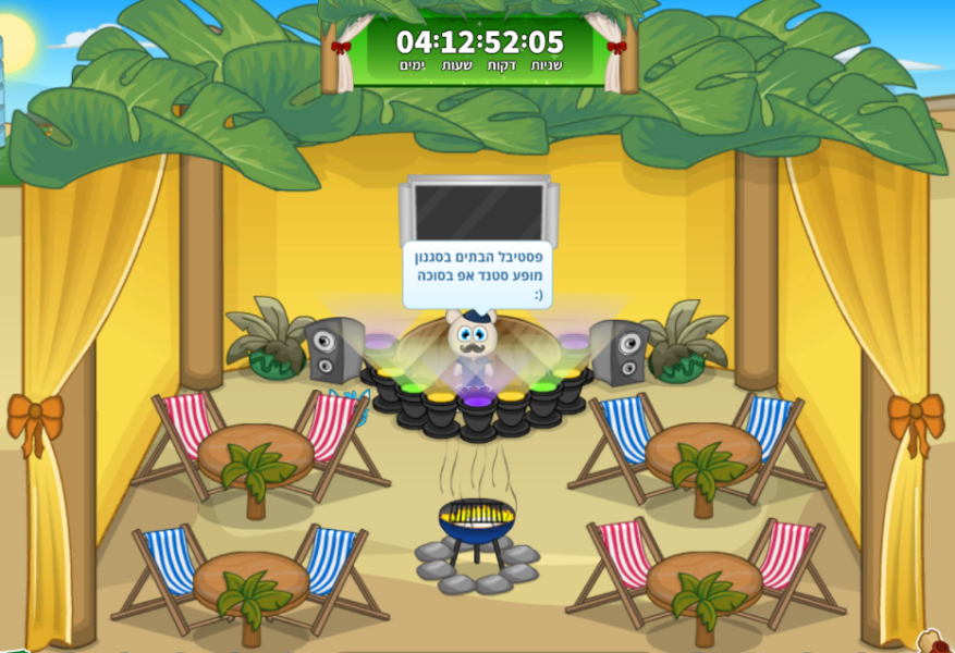 הי לכולם. הכנתי בית לפסטיבל הבתים בסגנון מופע סטנד אפ כזה בסוכה שיהיה כיף ויש מנגל, שאפשר לאכול ולנשנש פרגיות ומטעמים על האש :) מקווה שתאהבו בהצלוחי