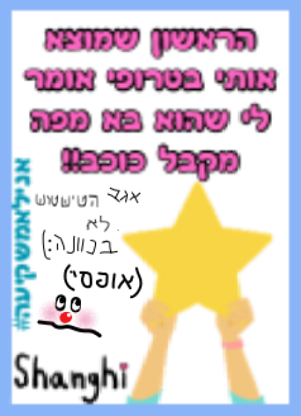 אם תפגשו אותי ותגידו לי: "באתי מהגלרייה שלך!, אני יכול לקבל כוכב?" ואני אגיד לכם: "נתתי היום" תוכלו להגיד לי:"תשתמשי במשתמש אחר כי הגעתי לסוף התיאור וראיתי שאני יכול לעשות זאת!", אני אכן אעשה זאת!!!!