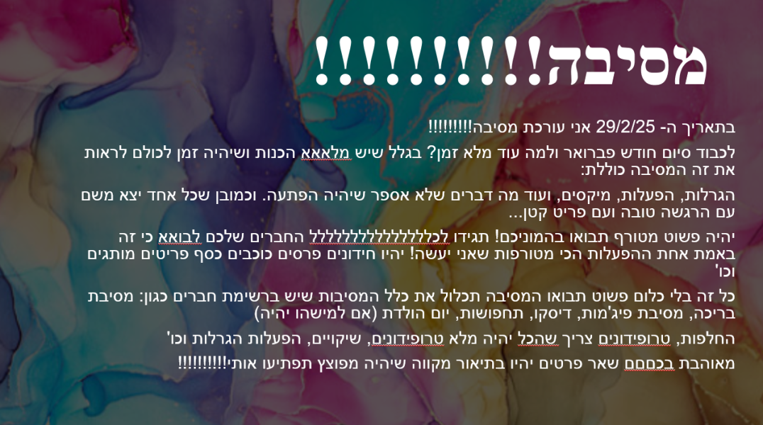 #טרופישולט!#טרופי#מסיבה#חובזון#תבואו#בהמוניכם#!!!!!!!!!#הכי#חשוב#לכבוד#סיום#חודש#ליבי#נתנה#לי#את#הרעיון#מהמסיבה#שהיא#עשתה#הלוואי#ותגיעו#אם#אני#אבוא#ויהיו#קצת#אני#אתאכזב#מאוד#מאוד#מאוד#אוהבת#אתכם#הכי#בעולם#מזכירה#לבוא#בהמוניכם#זה#באמת#חשוב#לי#תודה#מראש#לאב#יו#לאב#יו#לאב#יו#