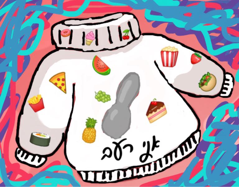 עיצוב סוודר אני רעב!!! אז כן, אני טיפה לא מרגישה טוב אז לא הלכתי לבית ספר היום, אז מצאתי המון זמן לעצב, ופתאום חשבתי, אני רעבה! אז עיצבתי סוודר אני רעב לטרופי, חח מקווה שהסוודר יתקבל עבדתי עליו ב-3 אפליקציות שונות ובתוכנה אחת, ואני עובדת עליו מאתמול כבר אז אני סופר דופר מקווה שהוא יתקבל עבדתי על זה ממש קשה