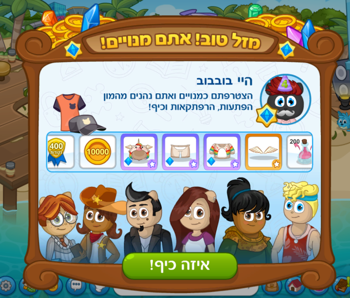 וכמובן חבילת מנוי חדשה ל- 30 ימים מנוי ובגדי טרופילדת צבעוני 8 הכוללים בלון 8 צבעוני , כובע 8 צבעוני , חולצה 8 צבעוני , וסוכריה 8 צבעוני שזה משלים את הסט של הסוכריות .