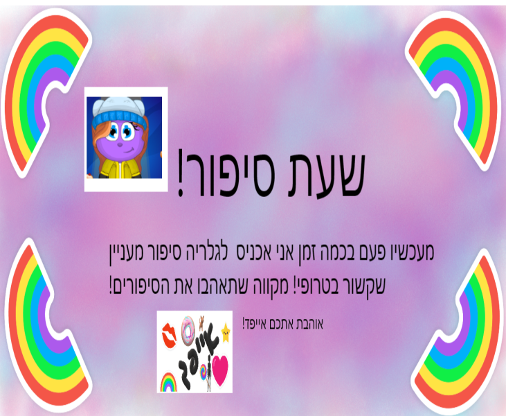 ומשהו נוסףף ביום שלישי ה- 26.7.21 אני עושה פתיחה של הסיפור שהבטחתי לכם!!! הוא לגילאי 10+ בגלל שהוא על השאוה וכאלה.. היה לי חשוב לכתוב סיפור על מאורע כל כך חשוב שקרה לעמ"י. חשוב לכור ולהזכיר! ועם כל בשורה טובה באה בשורה טובה פחות =) אבלל בשבילי זה לא כל כך גרוע.. תיכך תבינו למהההה תירדו למטה גבירותי ורבותייי 😌