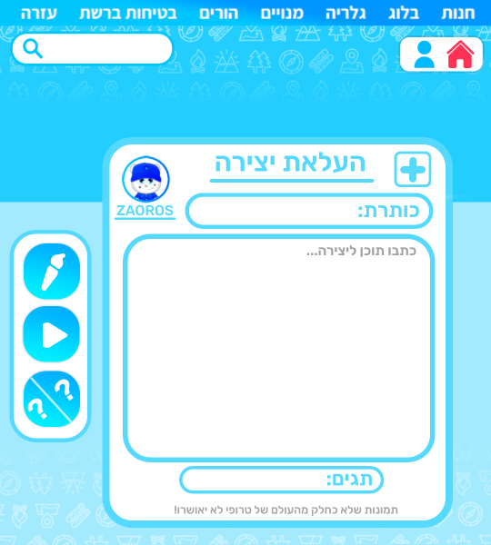 איך מעלים את היצירה? שתי אפשרויות, 1. יש לכם מעל הכותרת כזה פלוס, לחצו עליו וזה ישים לכם את היצירה.