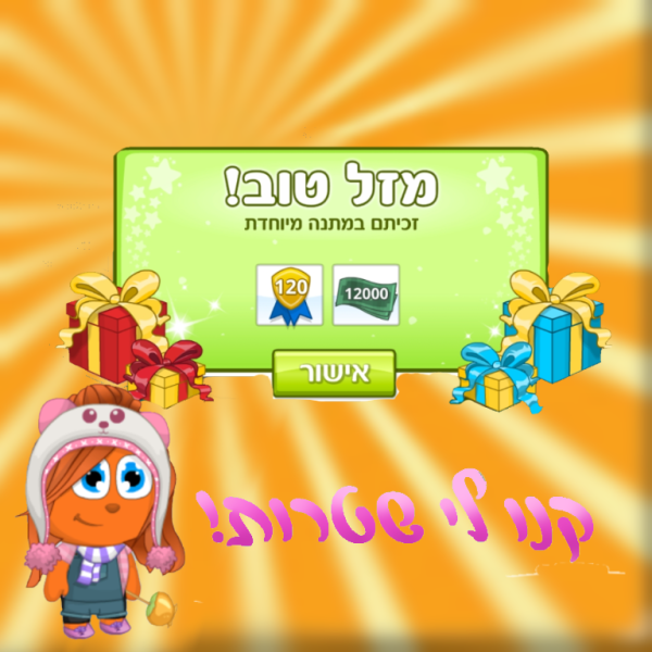 היי כולם! אני ממש מתרגשת! כייי תופים תופים תופים :)))) קנו לי שטרות יאיי האמתי שזה היה מהכסף שלי אבל לא משנה XD