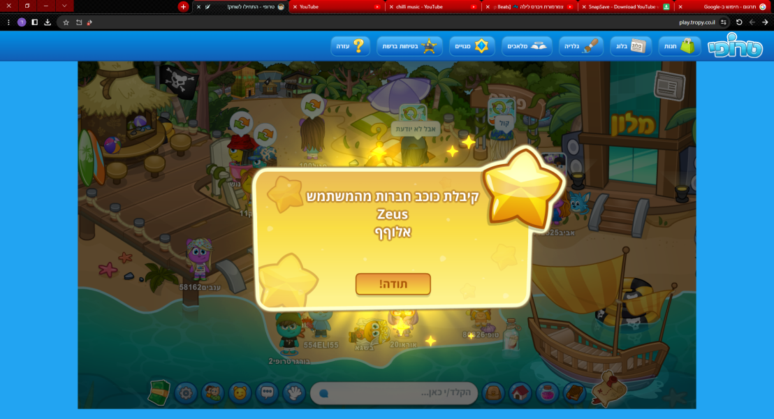 אוקי אוקי אוקי זאוס! נתן לי כוכב אחרי ששיחקנו במשחק החדש חרבות ונחשים כולם תיהנו מהמשחק תדעו שיש לנו מנהלים מטורפים ונחמדים הם עוזרים לנו ומבזבזים את החופש שלהם עלינו תעריכו אנשים תחשבו הם מנהלים 50-100 אלף שחקנים אז תדעו שאם אתם פוגשים מנהלים תפרגנו להם תשמחו אותם שידעו שכל ההשקעה שלהם לטוב ושהם לא סתם יצרו משחק פשוט הם משקיעים בנו תפרגנו!!!