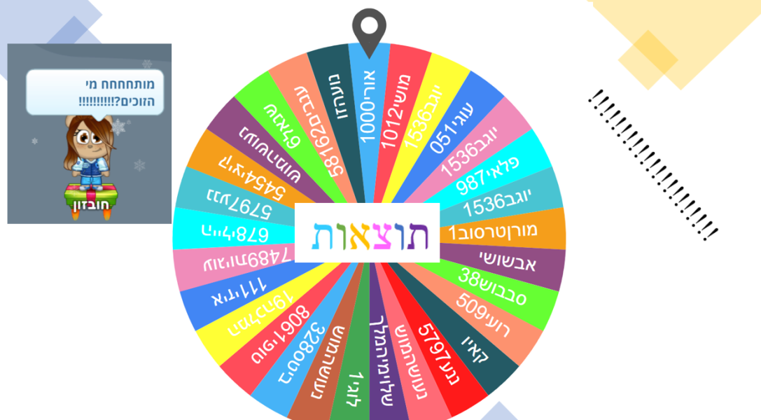 אזזזזזזזזז עשיתי הגרלה בהפתעה של כל המשתמשים שהיו מחוברים ובאותו חדר ובאותו רגע