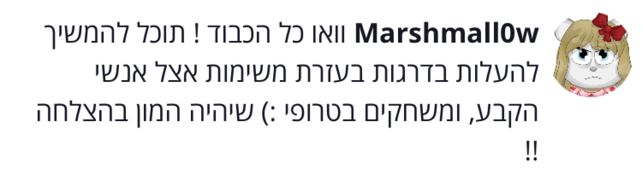 מתי שאני פתחתי את הגלריה שלי לפני 7 חודשים אז מרשמלו הראשונה שכתבה לי תגובה! תוכלו לראות בתמונה ששמתי