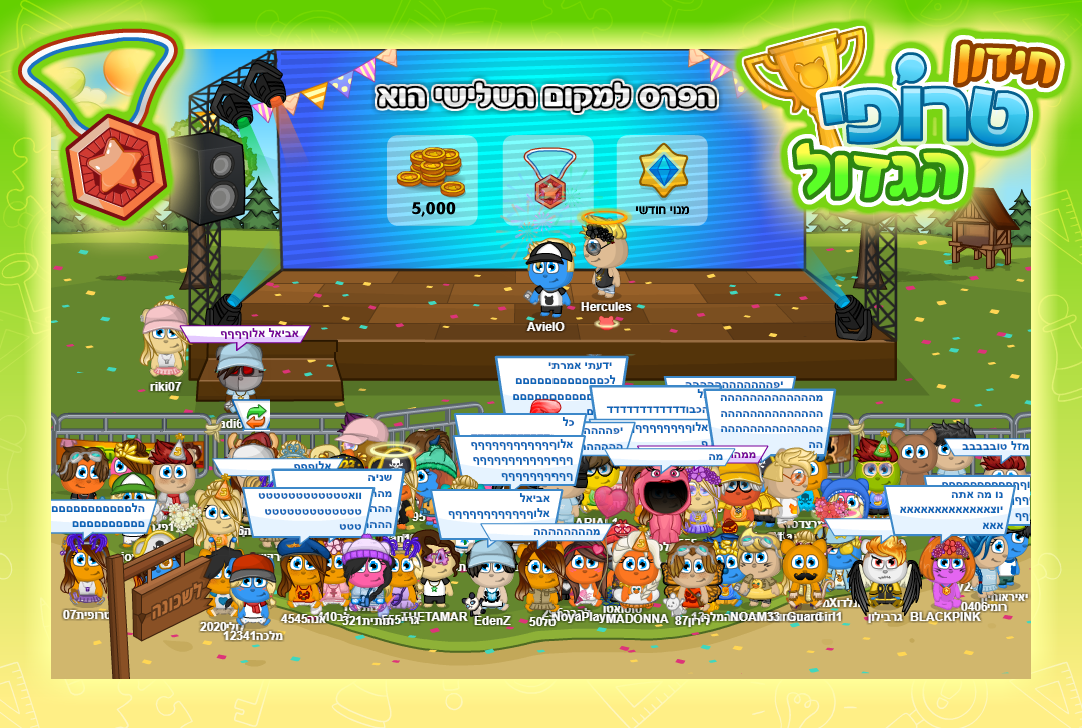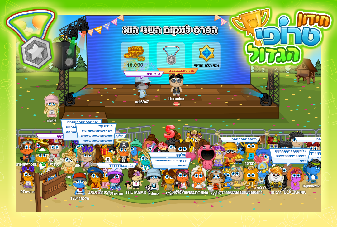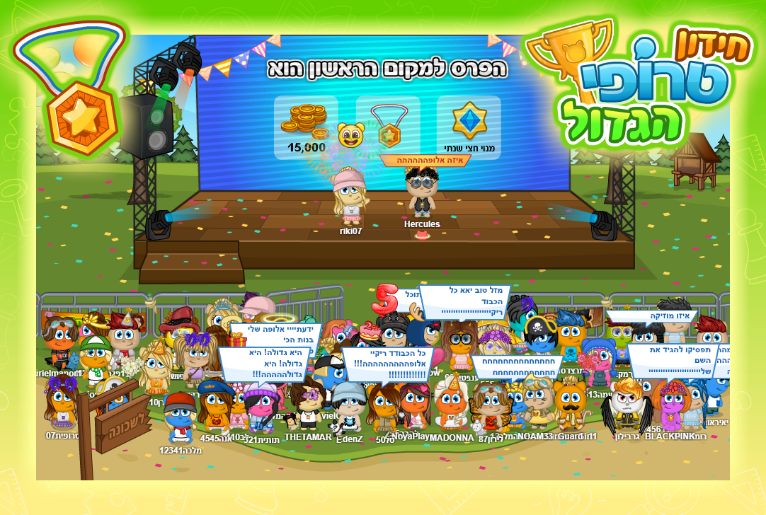 כמו שאתם יודעים, ביום רביעי שעבר, תאריך הטרופילדת (31 לאוגוסט) נערך גמר חידון טרופי הגדול שהיה מטורף! בגמר זכתה המשתמשת riki07 שהביאה הרבה כבוד וזכתה במנוי חצי שנתי, מדליית זהב והרבה מטבעות. אנחנו רוצים להגיד גם הרבה מזל טוב ל- adi6947 שהגיע למקום השני ול- AvielO שזכה במקום השלישי. הוכחתם הרבה ידע בטרופי ואתם כמעט יכולים להחליף את מרטין (אבל אולי עוד קצת עבודה לפני…)!! תודה רבה לכל מי מכם שהגיע לצפות כקהל והשתתף בחידון המטורף הזה, וגם הרבה תודה לסימה תושבת הקבע שלנו מהחוף שעשתה עבודת קריינות יוצאת מן הכלל!!!